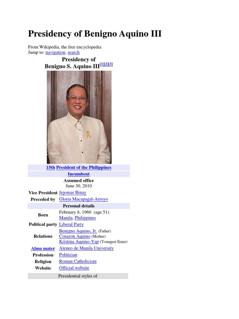 Former president benigno noynoy aquino iii has died, according to a report on super radyo dzbb on thursday, citing sources. It was during aquino's administration that manila took on china and filed a case before the international court of arbitration at the hague over the south china sea dispute [file: The presidency of benigno aquino iii began at noon on june 30, 2010, when he became the fifteenth president of the philippines, succeeding gloria macapagal arroyo. The sisters of former president benigno noynoy aquino iii addressed the public regarding the passing of their brother in an impromptu media briefing at. From wikimedia commons, the free media repository.